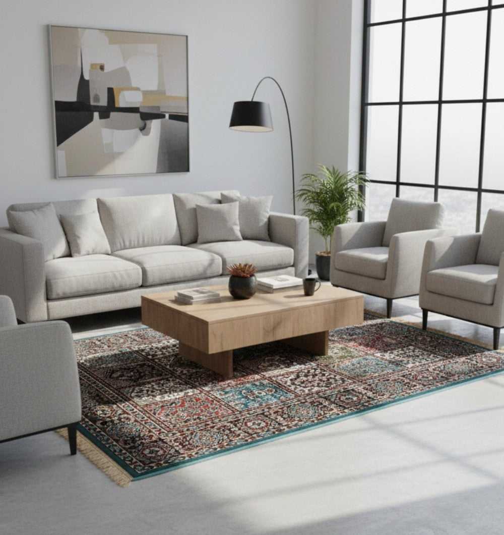 Transform your space with this timeless area rug that blends heritage craftsmanship with versatile style. Featuring intricate traditional patterns and carefully curated color palettes, it complements both contemporary and classic décor effortlessly. The robust weave ensures lasting durability, standing up beautifully to everyday wear while retaining its elegance. Striking borders and detailed motifs add dimension and character to any room whether your living area, bedroom, or workspace without dominating the aesthetic. Built to withstand high-traffic zones, this 5×7 FT rug remains simple to care for, making it a practical investment in your home's warmth and personality.